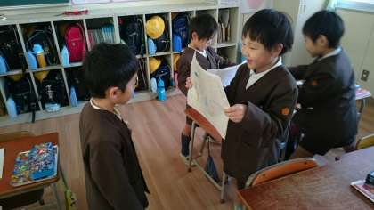 自分で考えたじゃんけんを友だちにじょうずに伝えて、友だちの作ったじゃんけんでみんんなで盛り上がっていました。(2月16日記事)