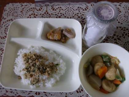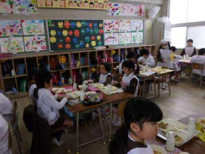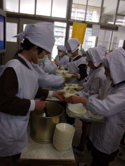 上手に配膳をするので、おかわりの分がちょっとしかありません。でも、おかわりをしたい人はたくさんいます。給食が入っていた入れ物がピカピカなるぐらい、きれいに空っぽにしていました。