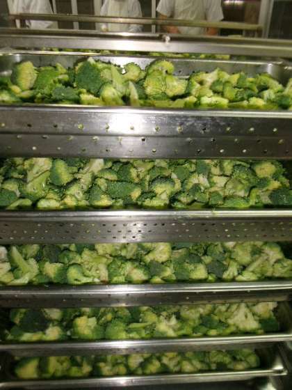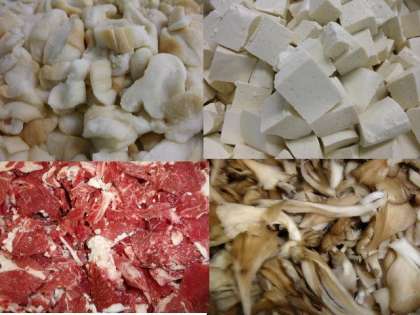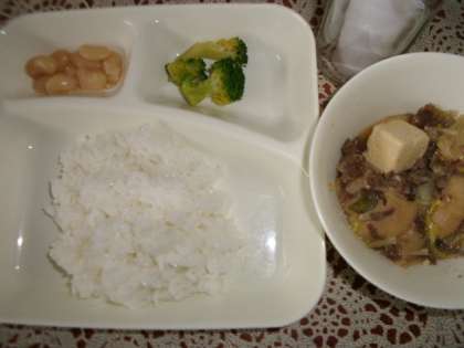 今日の献立は、「ごはん、すき焼き煮、ブロッコリーのしょうがづけ、大福豆の煮もの、牛乳」でした。ブロッコリーはゆでるのではなくて、焼き物機で蒸しました。こうすることで、水っぽくならず、色鮮やかに仕上がります。すき焼き煮には、牛肉、はくさい、白ねぎ、とうふ、ふ、まいたけなどが入り、ごはんが食べやすい献立でした。