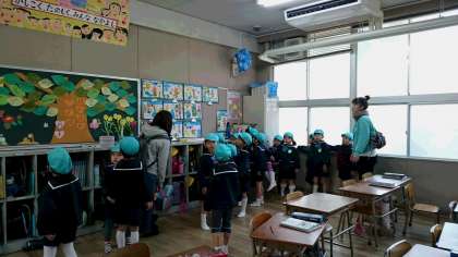 もうすぐ1年生の園児たちが、小学校の様子を見学に来ました。