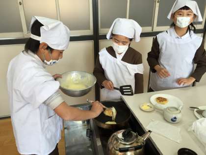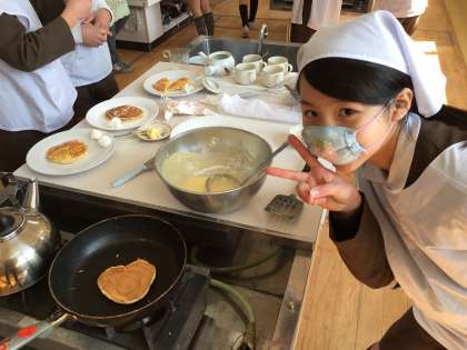 真ん丸やハートの形をしたパンケーキを焼いて楽しんでいました。