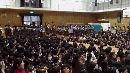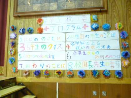 堀江幼稚園児も一緒に6年生の「卒業をお祝いする会」を行いました。