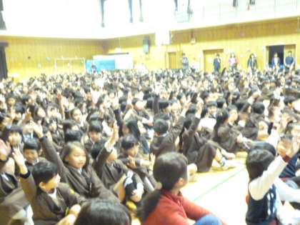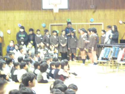 堀江幼稚園の主任のお話の後、6年生に関係するクイズをしました。