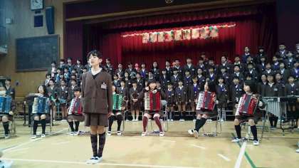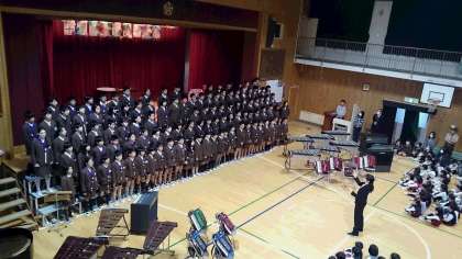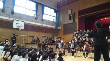 卒業生がお別れの言葉を伝え、合唱と演奏をしました。