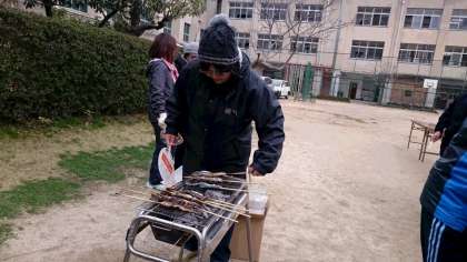 魚の内臓を取ったあとは、串刺しにして焼きます。