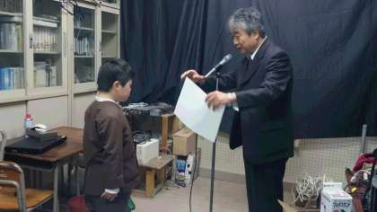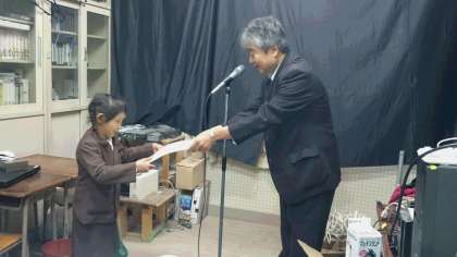 ひまわり学級で図工展に出した児童の表彰を行いました。