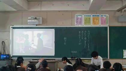 4年生に5年生が作成したコマーシャルを披露しました。