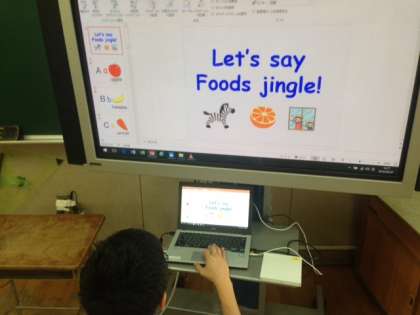 堀江小学校では、毎朝8時50分から9時まで「グローバルタイム」を設定して英語の学習を行っています。