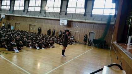 代表で生活安全委員長の児童がお礼とお願いのあいさつをしました。