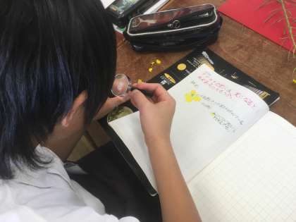 アブラナの花のつくりをルーペで観察しました。