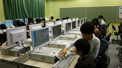 今日はパソコン室へ行って、マイ時間割表を作成しました。縦型?横型?どんな背景にしようかな。「図書」はローマ字でこうだよね?友だちと確かめあいながら楽しく熱心に取り組みました。