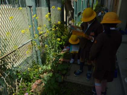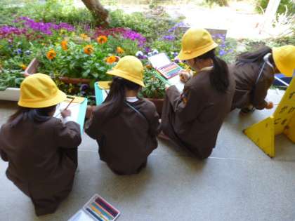 校庭に、自然を観察しに行きました。