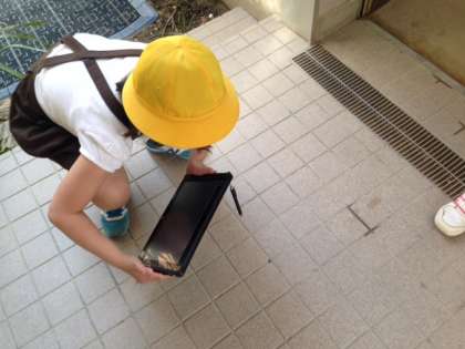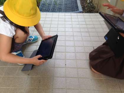 タブレットを使って、3年生が虫の観察を行いました。