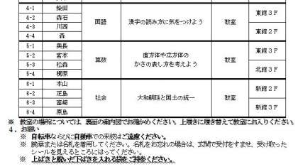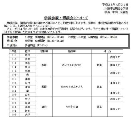 1年生は、3時間目が学習参観になっています。
