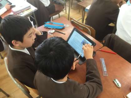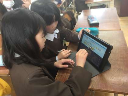 社会見学で行く柴島浄水場についてタブレットで調べました。新しくなったタブレットに興味津々な様子でした。画面が少し変わっていて、最初は戸惑っていましたが、少し説明すると、あとは自分たちで検索して学習を進めていました。さすがです。
