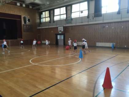握力チーム、Gボールチーム、ラダーチーム、立ち幅跳びチームにわかれて、ローテーションで45分フルに体を動かしました。