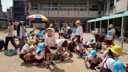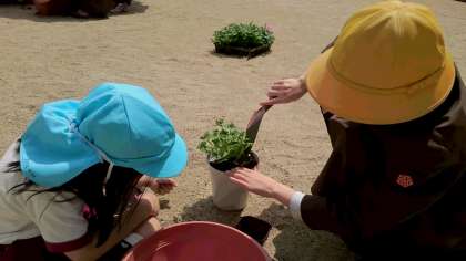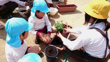 6年生は優しく、ていねいに幼稚園児に伝えていました。