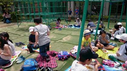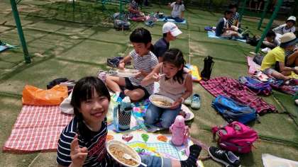 日向にいると暑いぐらいのお天気でしたが、子どもたちは作ってくださったおいしいカレーをお替わりして、楽しんでいました。