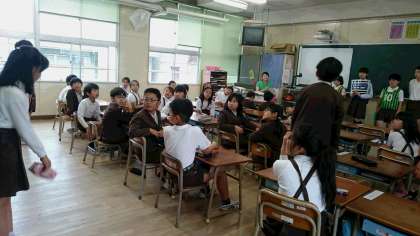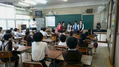 5年生の副班長が1年生を迎えに行き、それぞれの教室で班長と副班長の紹介をしました。