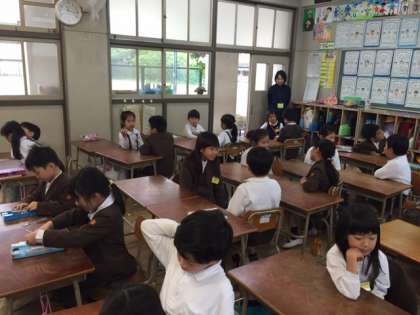席替えをしました。席替えをした後に友達との共通点をさがしました。多い子は10個以上見つけることができました。