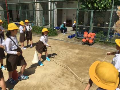 今日は天気が良かったので、運動場で八の字跳びをしました。