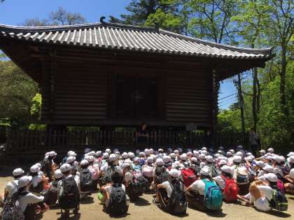 6年生から始まった歴史では、奈良時代の学習にはいり、大仏について学習しています。東大寺の大仏殿の他、二月堂や三月堂、校倉など実際に見ながら奈良の歴史に触れ合うことができました。