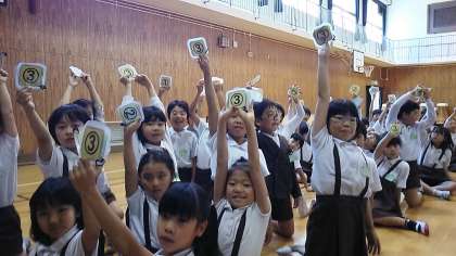 分別ゲームのあと、答え合わせをしながら楽しく学びました。これからはバッチリ分別できますね。学級対抗の分別ゲームは2組が優勝でした!