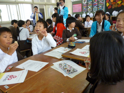 子ども達は、あみだ池の由来やおこしのできる様子などを興味深そうに聞いていました。