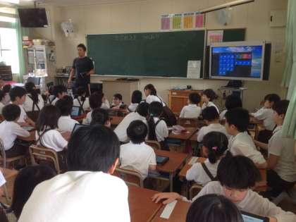 6年生のお兄さん、お姉さんに、タブレットの使い方を教えてもらいました。