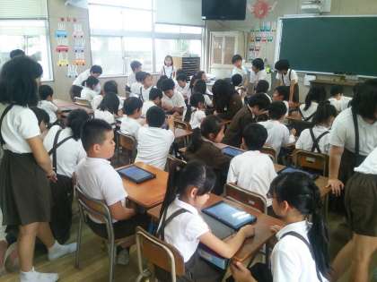 5年生は2年生にタブレットの基本操作を教えに行きました。