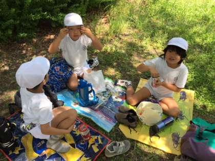 お楽しみのお弁当とおかしに、おもわず笑顔がほころびます。