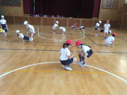 体育では、八の字跳びや体づくり運動を行いました。