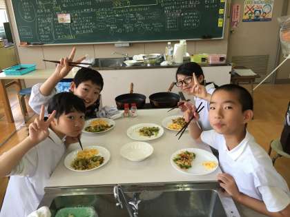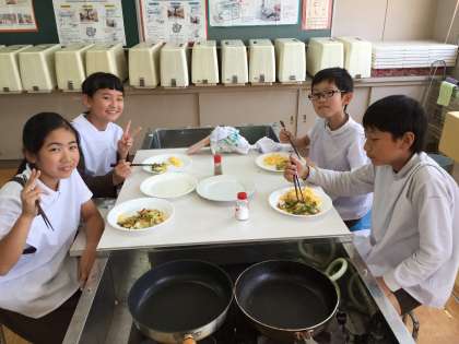 少し焦げてしまった班もありましたが、自分たちが作った料理をおいしそうに食べていました。