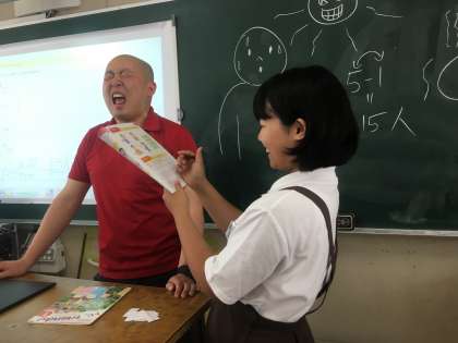 パトリック先生とも英語で会話に挑戦している児童がたくさんいました。