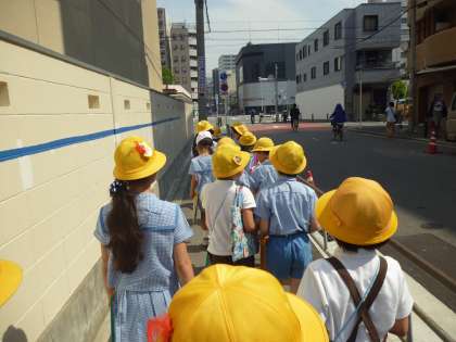 みんなより一日早く「中央急病診療所」チームがまちたんけんに出かけました。自分たちで2列に上手に並んで、地下道ではお互いに「しずかに」と注意し合いながら目的地に到着。「中央急病診療所」では、診察室、そこにあるたくさんの器械を見せていただきました。最後に、質問に答えていただき、たくさん勉強できました。