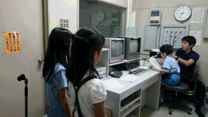 今日は3年生が「ゴールデンウィークの様子」を作文に書いて、放送室から各学級に向けて発表しました。