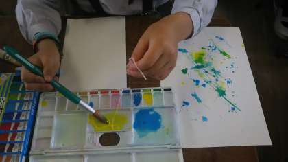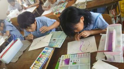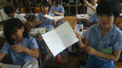 水彩絵の具のよさを感じながら、思いがけずにできる美しい模様を楽しみました。