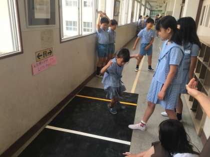 休み時間に、反復横跳び練習マットで練習をしている様子です。