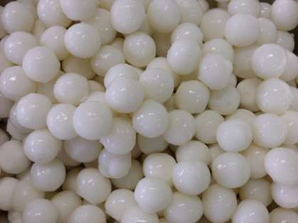 今日の献立は「ごはん、さけのみそ風味焼き、すまし汁、白玉のまっ茶ソースかけ、牛乳」でした。春らしい色の魚や野菜を使った献立でした。白玉のまっ茶ソースかけは、冷凍で届いた白玉だんごをゆでて、まっ茶と砂糖で作ったたれをかけました。