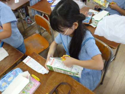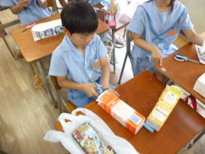 紙パックを使った工作をしています。