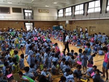 なかよし班活動を行いました。6月14日のなかよしまつりに向けて、交流を深めました。堀江幼稚園の子どもも参加しました。6年生が中心となり、グループのみんなをリードしていました。