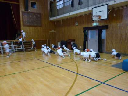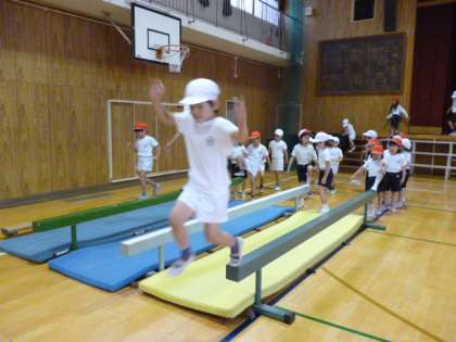 跳んだり、腕で支えたり、バランスをとったりといろいろな動きをしました。