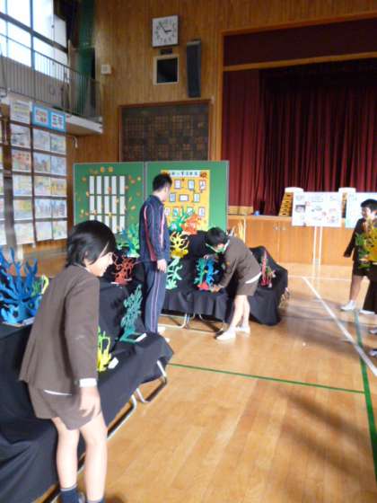 16日の土曜参観から始まる作品展に出品する絵画と紙粘土の作品を丁寧に展示しました。どれもこれも力作ばかりですので楽しみにしてください。