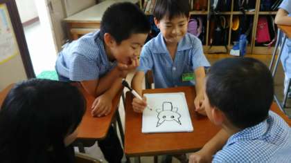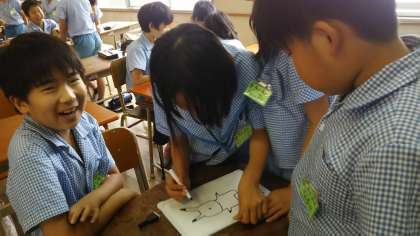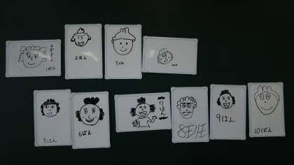 グループ対抗でリレーお絵かきを楽しみました。1番目の人は輪郭、2番目は目と鼻…