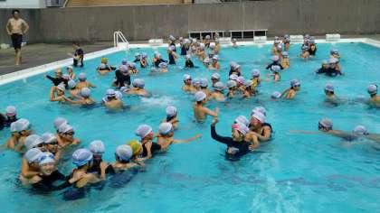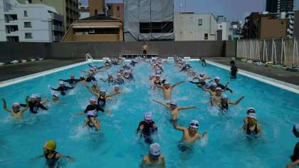 今日は午後からのプール水泳。みんな気持ちよさそうです。水慣れを楽しんだあとは、クロール25メートルをめざし、きれいなけのび・バタ足をがんばりました。