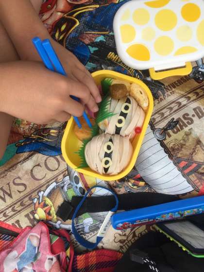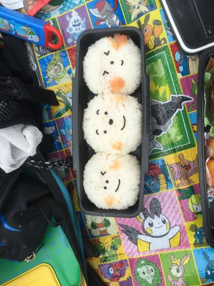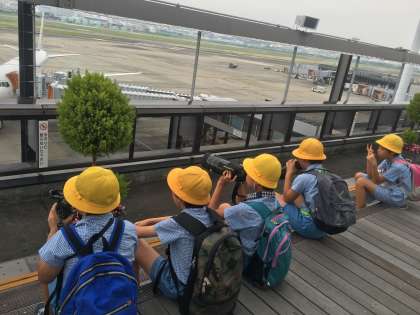 展望デッキで飛行機の離陸をみながらお弁当を食べました。