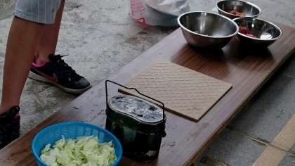 自分たちで食材を買いに行き、夕食作りが始まります。