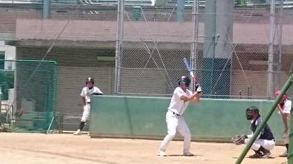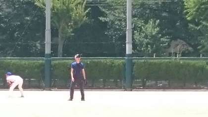 攻撃は堀江小学校PTAチーム、守備は堀江小学校も含めた先生チーム。