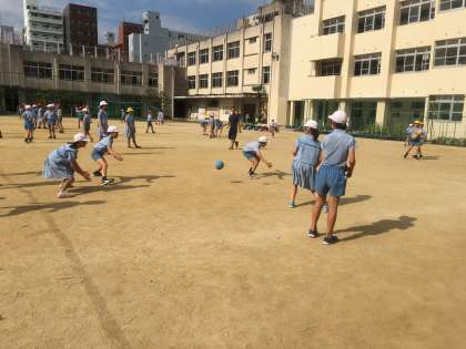 朝の準備が終わったら運動場で元気いっぱいドッジボールをしています。