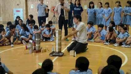空き缶にお米を入れて少し温めると、不思議な音色が響きます。